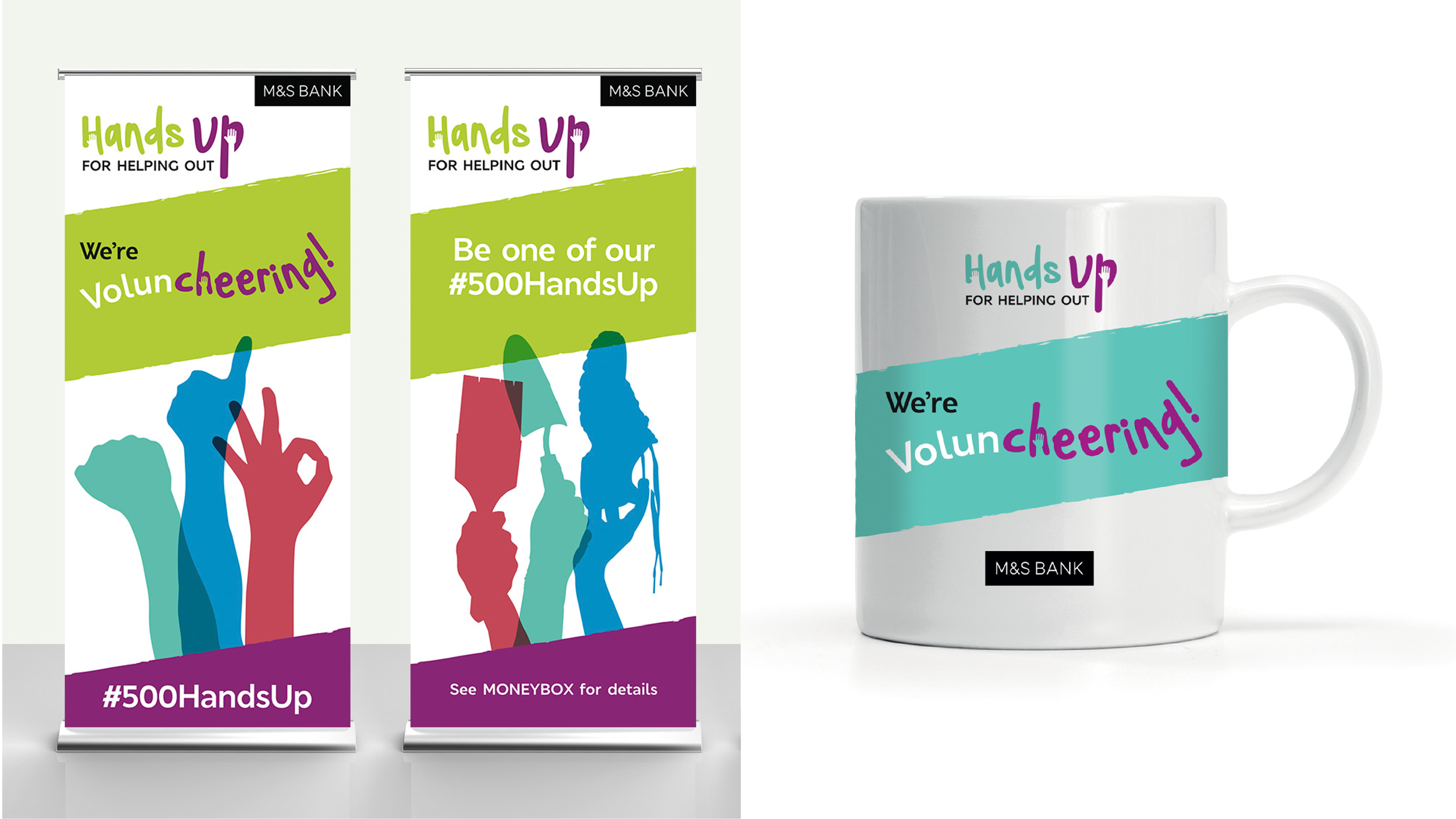 Ident design, branding and copywriting for an M&S Bank volunteering / fundraising campaign. (Undertaken at People Activation)